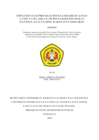 Pradini, Frida Apprilia (2024) Implementasi Program Peduli Disabilitas dan Lanjut Usia (DILAN) di Dinas Kependudukan dan Pencatatan Sipil Kabupaten Sidoarjo. Undergraduate thesis, UPN Veteran Jawa Timur.