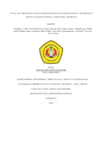 Ratnaningsih, Aisyah Vira (2024) EVALUASI PROGRAM KAREPE DIMESEMI BOJO BAGI PENYANDANG DISABILITAS MENTAL DI DINAS SOSIAL KABUPATEN JOMBANG. Undergraduate thesis, UPN Veteran Jawa Timur.