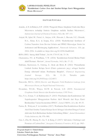 Kristanti, Dona Avrilia (2024) Karakterisasi Carbon Dots dari Serabut Kelapa Sawit Menggunakan Proses Microwave. Undergraduate thesis, UPN "Veteran" Jawa Timur.