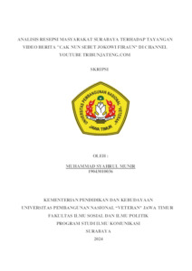 Munir, Muhammad Syahrul (2024) Analisis Resepsi Masyarakat Surabaya Terhadap Tayangan Video Berita "Cak Nun Sebut Jokowi Firaun" Di Channel Youtube Tribunjateng.com. Undergraduate thesis, UPN Veteran Jawa Timur.