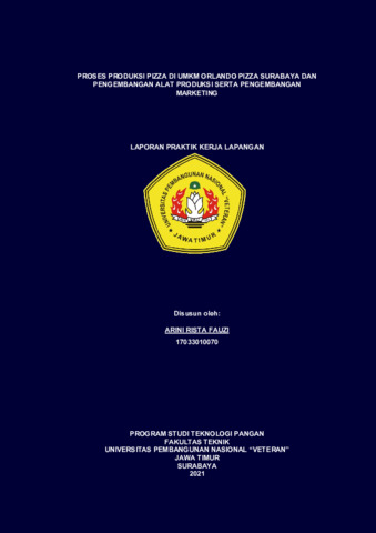FAUZI, ARINI RISTA Proses Produksi Pizza di UMKM Orlando Pizza Surabaya dan Pengembangan Alat Produksi serta Pengembangan Marketing. Project Report (Praktek Kerja Lapang dan Magang). UPN Veteran Jawa Timur. (Unpublished)