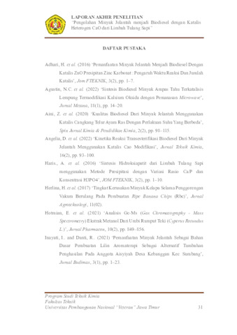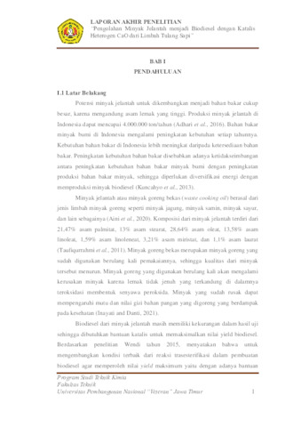 Sari, Dewi Puspita (2024) Pengolahan Minyak Jelantah Menjadi Biodiesel Dengan Katalis Heterogen CaO Dari Limbah Tulang Sapi. Undergraduate thesis, UPN Veteran Jawa Timur.