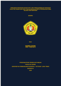 Qotima, Khusnul (2023) PENGARUH PROPORSI BAHAN DAN LAMA PENGGORENGAN TERHADAP KUALITAS ABON IKAN LELE (Clarias batrachus) SERTA PERUBAHAN KIMIA SELAMA PENYIMPANAN. Undergraduate thesis, UPN "VETERAN" JAWA TIMUR.