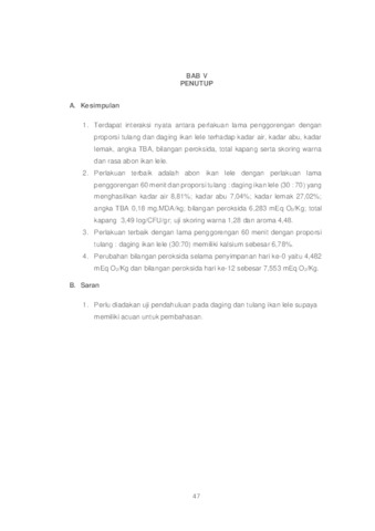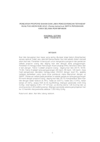 PENGARUH PROPORSI BAHAN DAN LAMA PENGGORENGAN TERHADAP KUALITAS ABON IKAN LELE (Clarias batrachus) SERTA PERUBAHAN KIMIA SELAMA PENYIMPANAN