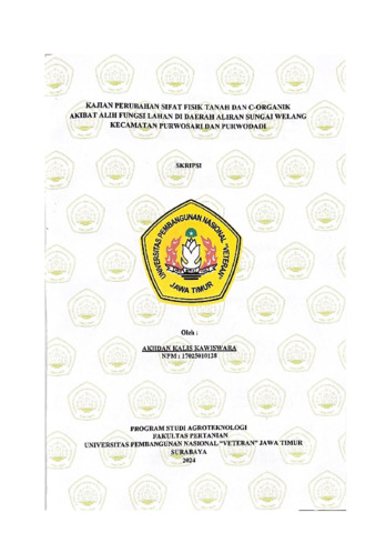 Kawiswara, Akhdan Kalis (2024) Kajian Perubahan Sifat Fisik Tanah dan C-Organik Akibat Alih Fungsi Lahan Di Daerah Aliran Sungai Welang Kecamatan Purwosari dan Purwodadi. Undergraduate thesis, UPN Veteran Jawa Timur.
