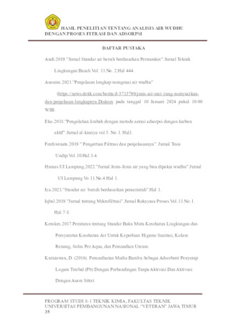 Ramadhan, Mochamad Ilham (2024) Studi Mikrofiltrasi Dan Adsorbsi Air Limbah Wudhu Secara Kontinyu. Undergraduate thesis, UPN Veteran Jawa Timur.