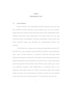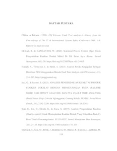 Quality control is an important step that must be done at every stage of the production process, starting from before production begins until the final product is finished. The goal is to meet the established quality standards, improve the quality of products that do not meet the standards and maintain adequate product quality. CV. Esa Kalen Jaya is a company that produces upper shoes. Upper shoe products that have been made will be sent to the parent company of PT. Esa Kalen Jaya. Production results produced by CV. Esa Kalen Jaya has a disability of 1,542 pairs or 12.5% of the expected disability of only 9%. Uncontrolled resulting disability requires special treatment to reduce disability rates. To fix this, the FTA (fault tree analysis) method is used. FTA is used to determine the root cause of disability, factors that cause disability and provide suggestions for improvement. The result is that there are 9 disability factors including fatigue and the proposed improvement is to provide adequate rest time for employees. Keywords: quality control, fault tree analysis, upper