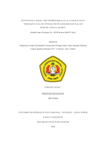 Istiqomah, Hikmah (2024) PENTINGNYA SAKSI A DE CHARGE SEBAGAI ALAT BUKTI BAGI TERDAKWA DALAM TINDAK PIDANA KEKERASAN DALAM RUMAH TANGGA (KDRT) (Studi Kasus Putusan No. 3339/Pid.Sus/2018/PN.Sby). Undergraduate thesis, UPN VETERAN JAWA TIMUR.