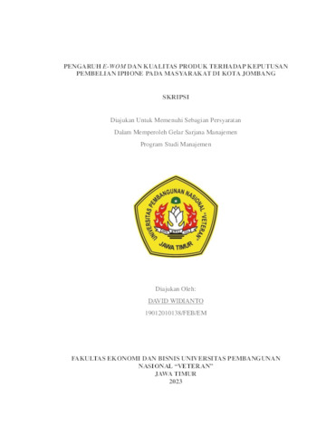 Sutanto, David Widianto (2024) Pengaruh E-WOM dan Kualitas Produk terhadap Keputusan Pembelian Iphone pada Masyarakat di Kota Jombang. Undergraduate thesis, UPN Veteran Jawa Timur.