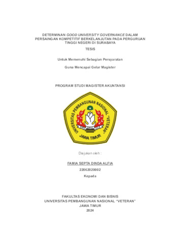 Septa Dinda Alfia, Famia (2024) DETERMINAN GOOD UNIVERSITY GOVERNANCE DALAM PERSAINGAN KOMPETITIF BERKELANJUTAN PADA PERGURUAN TINGGI NEGERI DI SURABAYA. Masters thesis, UPN VETERAN Jawa Timur.