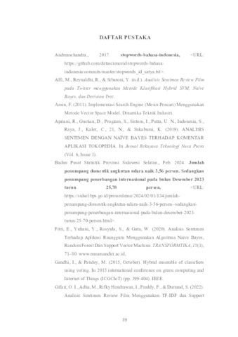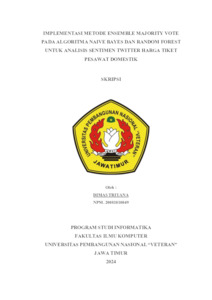 Triyana, Dimas (2024) IMPLEMENTASI METODE ENSEMBLE MAJORITY VOTE PADA ALGORITMA NAIVE BAYES DAN RANDOM FOREST UNTUK ANALISIS SENTIMEN TWITTER HARGA TIKET PESAWAT DOMESTIK. Undergraduate thesis, UPN Veteran Jawa Timur.