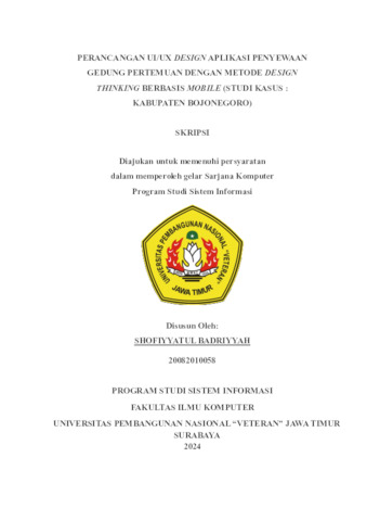 Badriyyah, Shofiyyatul (2024) Perancangan UI/UX Design Aplikasi Penyewaan Gedung Pertemuan Dengan Metode Design Thinking Berbasis Mobile (Studi Kasus : Kabupaten Bojonegoro). Undergraduate thesis, Universitas Pembangunan Nasional Veteran Jawa Timur.