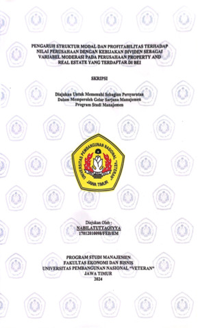 Nabilatuttaqiyya, Nabilatuttaqiyya (2024) Pengaruh Struktur Modal dan Profitabilitas terhadap Nilai Perusahaan dengan Kebijakan Dividen sebagai Variabel Moderasi pada Perusahaan Property and Real Estate yang terdaftar di BEI. Undergraduate thesis, UPN Veteran Jawa Timur.