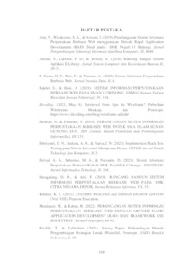 The library of SMA Negeri 1 Sreseh Sampang is the place for collect, store, manage and arrange collections of library materials systematically to be used as a source of information and learning tool. Currently, there are book borrowing, data collection and reporting mechanisms in the library This is still done manually. This research aims to improve performance and efficiency by developing information systems web-based library. The development of this system uses the RAD method with several stages, namely requirements planning, design workshop, implementation, this library information system uses a framework laravel and Mysql database. The result of this research is an information system web-based library which has several features such as book management, member management, book lending, visitor recording, and virtual tours. System testing is carried out using the black box testing method and User Acceptance Testing (UAT). The black box testing results show system features such as, book management which includes adding and editing book data, as well as member management which includes activation, deactivating, and deleting member accounts, went well. Results UAT system testing shows a positive response from users with levels functionality satisfaction 87%, user interface 87% and user experience 90%.