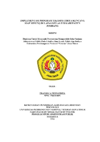 Fernandita, Fransisca (2024) Implementasi Program TIKASIM (Tirta Kencana Siap Minum) di Lapas Kelas II B Kabupaten Jombang. Undergraduate thesis, UPN Veteran Jawa Timur.