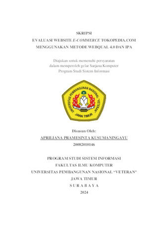 Kusumaningayu, Apriliana Pramesinta (2024) EVALUASI WEBSITE E-COMMERCE TOKOPEDIA.COM MENGGUNAKAN METODE WEBQUAL 4.0 DAN IPA. Undergraduate thesis, UPN Veteran Jawa Timur.