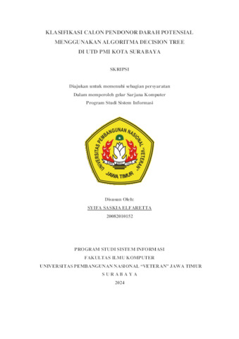 Elfaretta, Syifa Saskia (2024) KLASIFIKASI CALON PENDONOR DARAH POTENSIAL MENGGUNAKAN ALGORITMA DECISION TREE DI UTD PMI KOTA SURABAYA. Undergraduate thesis, Universitas Pembangunan Nasional Veteran Jawa Timur.