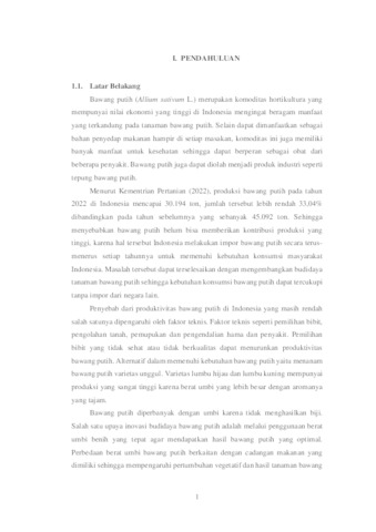 Khikmah, Rizkiyatul Awwalu Bil (2024) Pengaruh Berat Umbi dan Penambahan Bahan Organik Terhadap Pertumbuhan dan Hasil Tanaman Bawang Putih (Allium sativum L.) Var. Lumbu Kuning. Undergraduate thesis, UPN Veteran Jawa Timur.