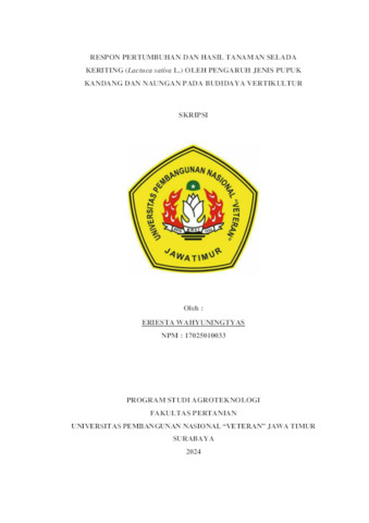 ERIESTA, ERIESTA WAHYUNINGTYAS (2024) RESPON PERTUMBUHAN DAN HASIL TANAMAN SELADA KERITING (Lactuca sativa L) OLEH PENGARUH JENIS PUPUK KANDANG DAN NAUNGAN PADA BUDIDAYA VERTIKULTUR. Undergraduate thesis, UPN Veteran Jawa Timur.