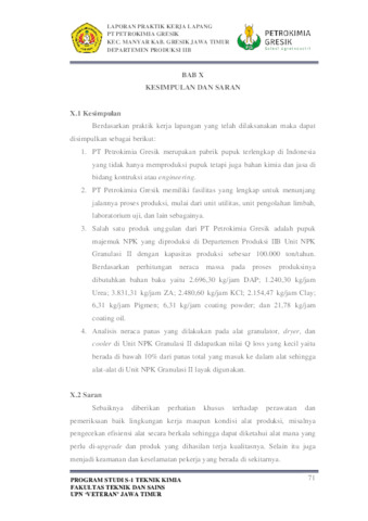 AURELIA SALSHABILA, KIRANA (2024) ANALISIS NERACA MASSA DAN PANAS UNIT NPK GRANULASI II DENGAN KAPASITAS 100 TON/TAHUN DI PT PETROKIMIA GRESIK. Project Report (Praktek Kerja Lapang dan Magang). FAKULTAS TEKNIK DAN SAINS. (Unpublished)
