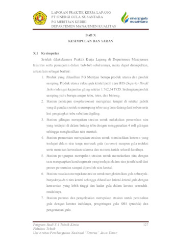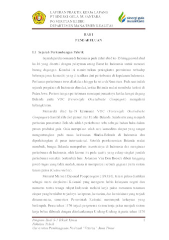 LAPORAN PRAKTIK KERJA LAPANG PT SINERGI GULA NUSANTARA PG MERITJAN