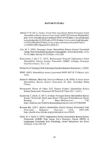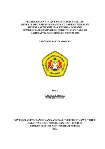ZALFAA, FAIRUUZ PELAKSANAAN TUGAS FASILITATOR EVALUASI KINERJA ORGANISASI PERANGKAT DAERAH MELALUI SISTEM AKUNTABILITAS KINERJA INSTANSI PEMERINTAH (SAKIP) OLEH SEKRETARIAT DAERAH KABUPATEN BOJONEGORO TAHUN 2022. Fakultas Ilmu Politik dan Ilmu Sosial. (Unpublished)