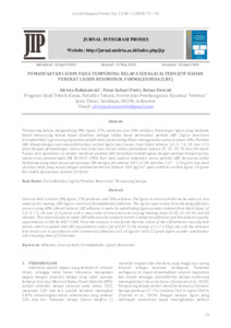 Tempurung kelapa mengandung 29% lignin, 27% pentosan, dan 26% selulosa. Kandungan lignin yang terdapat dalam tempurung kelapa dapat dijadikan sebagai bahan dasar pembuatan perekat LRF (lignin resorsinol formaldehida). Lignin yang digunakan adalah hasil proses delignifikasi menggunakan pelarut etanol 40%. Perekat LRF dibuat dengan cara mensubtitusikan serbuk lignin hasil isolasi lindi hitam sebesar 2,5; 5; 7,5; 10; dan 12,5 gram dengan perbandingan massa resorsinol dan variasi waktu pemanasan selama 20, 25, 30, 35, dan 40 menit. Tujuan dari penelitian ini adalah membuat perekat LRF kemudian dibandingkan dengan perekat komersial dan syarat mutu perekat pada SNI 06-4567-1998. Dari hasil analisis diperoleh warna perekat LRF berwarna coklat kehitaman yang telah sesuai persyaratan SNI dengan pH sebesar 9,97-11,04, densitas 1,17 – 1,28 g/ml, dan hasil uji daya rekat yang sesuai dengan perekat komersial sebesar 3,65 kg/cm2 pada subtitusi serbuk lignin 2,5 gram dan waktu pemanasan selama 20 menit