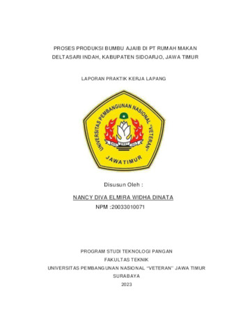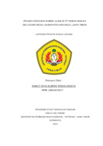 Dinata, Nancy Diva Elmira Widha (2024) PROSES PRODUKSI BUMBU AJAIB DI PT RUMAH MAKAN DELTASARI INDAH, KABUPATEN SIDOARJO, JAWA TIMUR. Project Report (Praktek Kerja Lapang dan Magang). Fakultas Teknik dan Sains, Surabaya.