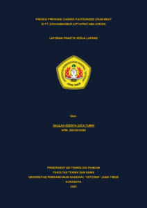 Yumni, Dalilah PROSES PRODUKSI CANNED PASTEURIZED CRAB MEAT DI PT. GRAHAMAKMUR CIPTAPRATAMA GRESIK. Project Report (Praktek Kerja Lapang dan Magang). Universitas Pembangunan Nasional "Veteran" Jawa Timur. (Unpublished)