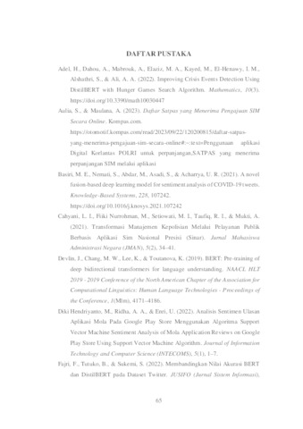 Putri, Nabila Rizky Amalia (2024) Analisis Sentimen Pada Ulasan Aplikasi Digital Korlantas Polri Menggunakan Model DistilBERT. Undergraduate thesis, UPN Veteran Jawa Timur.