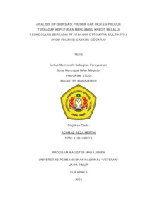 MUFTHI, ACHMAD REZA (2024) ANALISA DIFERENSIASI PRODUK DAN INOVASI PRODUK TERHADAP KEPUTUSAN MENGAMBIL KREDIT MELALUI KEUNGGULAN BERSAING PT WOM FINANCE CABANG SIDOARJO. Masters thesis, UPN VETERAN JAWA TIMUR.