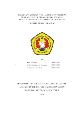 Purnomo, Andi and Sumanto, Alvico Faudiansyah and Holis, Mohammad Nur (2023) Desain Antarmuka Web Marine Weather EWS Terhadap Jalur Pelayaran di Wilayah Pengamatan BMKG Meteorologi Surabaya. Project Report (Praktek Kerja Lapang dan Magang). Andi Purnomo. (Unpublished)