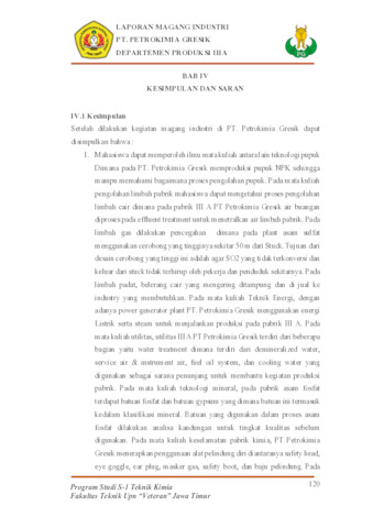 Fadhilah, Rahadyan Itsar LAPORAN MAGANG INDUSTRI PT PETROKIMIA GRESIK DEPARTEMEN PRODUKSI III A. FAKULTAS TEKNIK, Surabaya. (Unpublished)