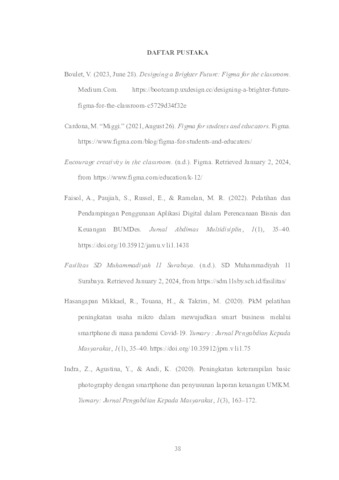PRAMESWARI, ANGGITA and JAWHARAH, FAIRUZ and ARIFVIANDO, FIKRI and FERNALDY, FABIYAN A. and ANANDA, AHMAD IHZA and Elfirdaus, Ivana and Hermawan, Anastasya Zalsabilla and Simanjorang, Veby Pebiola Br and SITOMPUL, BYANCA REBECCA Y. and PUTRA, IRVAN PRATAMA LAPORAN AKHIR NON KULIAH KERJA NYATA TEMATIK MERDEKA BELAJAR KAMPUS MERDEKA TINGKATKAN KREATIVITAS BERSAMA FIGMA: SOSIALISASI DESAIN DIGITAL DI SD MUHAMMADIYAH 11 SURABAYA. UPN VETERAN JAWA TIMUR.