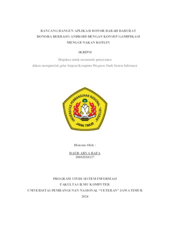 AryaRafa, Daud (2024) RANCANG BANGUN APLIKASI DONOR DARAH DARURAT DONORA BERBASIS ANDROID DENGAN KONSEP GAMIFIKASI MENGGUNAKAN KOTLIN. Undergraduate thesis, UPN "VETERAN" JAWA TIMUR.
