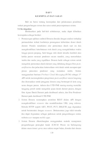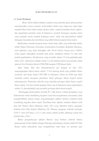 Donor darah adalah tindakan sukarela yang sangat penting untuk menyelamatkannyawamanusia. Namun, di Indonesia, masih terdapat masalah serius terkait kurangnya pasokandarahyang memadai. Salah satu penyebabnya adalah kurangnya kesadaran dan koordinasi dalamkegiatan donor darah. Aplikasi Donora dikembangkan menggunakan Kotlin denganAndroidStudio. Konsep gamifikasi diterapkan untuk meningkatkan motivasi dan keterlibatan penggunadalam donor darah. Donora memanfaatkan metode pengembangan SCRUM, yang memungkinkan pengembanganyang lebih cepat dan adaptif. Aplikasi ini dirancang untuk mengatasi masalah lambatnyaprosespermintaan darah dengan fitur push-notification dan pelacakan stok darah secara real-time. Hal ini diharapkan dapat mempercepat pencarian pendonor dan meningkatkan efisiensi layanandonor darah. Penelitian ini mengharapkan bahwa aplikasi Donora akan memberikan solusi inovatif untukmeningkatkan partisipasi donor darah dan memanfaatkan konsep gamifikasi untuk mencapai tujuan kesehatan yang lebih besar dengan meningkatkan minat pengguna untuk melakukandonor darah dimana fokus gamifikasinya ada pada sistem leveling dan reward point yangdilakukan oleh penggguna. Pengembangannya mengikuti pendekatan Scrum dengan 5 iterasi sprint. Pengujianaplikasi dilakukan secara manual dengan metode black box, dan hasilnya memuaskan. Implementasi dilakukan dengan memindahkan sistem ke cloud hosting server, memungkinkan akses online, dan meningkatkan ketersediaan layanan bagi masyarakat. Hasil pengujian dari pembuatan aplikasi ini didaptkan bahwa keseluruhan Product Backlogsudah di penuhi dan teruji menggunakan test case yang disediakan oleh Quality Assurancedimana keseluruhan fitur sudah lolos pengetesan , dan hasilnya memuaskan. Kata kunci— scrum,mobile apps,kotlin,gamifikasi,android,transfusi darah,stok darah