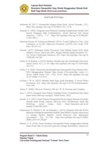 Nanopartikel adalah ukuran partikel yang berskala kurang dari 100 nanometer yang mana dapat disintesis menggunakan metode biologi yang biasa dikenal dengan biosintesis. Selain alasan keamanan lingkungan, penggunaan biosintesis juga cocok untuk penerapan konsep industri hijau. Prinsip dari biosintesis nanopartikel seng oksida (ZnO) adalah memanfaatkan bahan biologis sebagai bahan reduktor alami yang dapat diperoleh melalui bahan alam yang terkandung senyawa flavonoid di dalamnya. Flavonoid bertindak sebagai bioreduktor dan penstabil dalam biosintesis nanopartikel ZnO karena memiliki gugus hidroksil (OH) yang mampu mendonorkan elektronnya pada ion Zn2+ menggunakan tambahan prekursor sehingga terbentuk nanopartikel ZnO. Bioreduktor yang digunakan dalam penelitian ini adalah kulit buah naga merah yang selanjutnya dimaserasi untuk diambil ekstraknya. Kemudian ekstrak tersebut disintesis dengan larutan prekursor seng nitrat tetrahidrat untuk membentuk senyawa ZnO menggunakan magnetic stirrer pada suhu 80oC selama 3 jam. Hasil sintesis tersebut selanjutnya dikalsinasi dalam furnace selama 2 jam di suhu 600oC. Hasil uji spektrofotometri UV-VIS pada sampel ekstrak kulit buah naga menunjukkan bahwa flavonoid total yang terkandung dalam ekstrak adalah sebesar 5,6 x 10-4 mg QE/g. Dengan uji FTIR nanopartikel ZnO diketahui mengandung gugus OH yang ditandai dengan peak di daerah 3374,10 cm-1. Didapatkan yield optimum sebesar 69% pada variabel dengan volume 35%v/v. Hasil XRD menunjukkan bahwa nanopartikel ZnO memiliki bentuk wurtzite heksagonal dengan ukuran rata-rata diameter kristal adalah sebesar 131,5 nm. Hasil SEM-EDX menunjukkan kandungan komposisi penyusun yang ada di dalam nanopartikel ZnO, yaitu terdiri dari 69,41% seng dan 29,35% oksigen. Selain itu, nanopartikel ZnO memiliki morfologi permukaan yang tidak beraturan, tidak homogen, serta memiliki ukuran bervariasi.