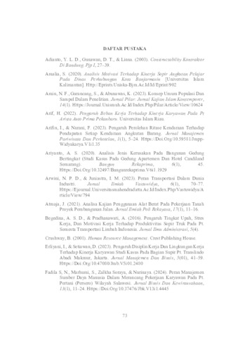 Analisis Pengaruh Beban Kerja, Besaran Nilai Upah, Banyak Ritase Terhadap Kinerja Driver Jasa Angkut PT. Barokah Bumi Jaya