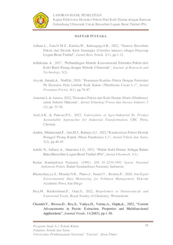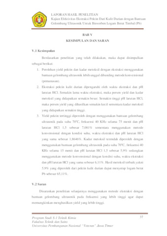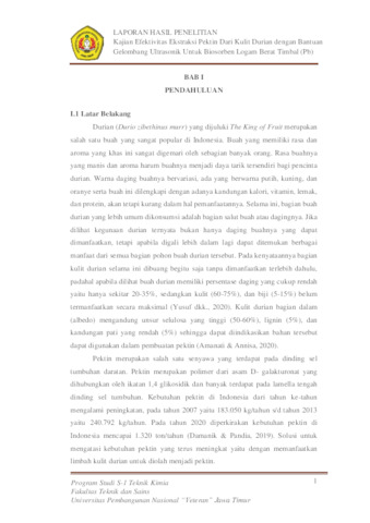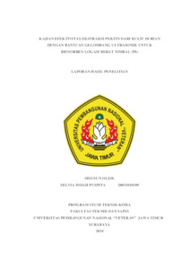 Puspita, Selvia Indah (2024) KAJIAN EFEKTIVITAS EKSTRAKSI PEKTIN DARI KULIT DURIAN DENGAN BANTUAN GELOMBANG ULTRASONIK UNTUK BIOSORBEN LOGAM BERAT TIMBAL (Pb). Undergraduate thesis, UPN Veteran Jawa Timur.