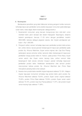 PENGARUH ATRIBUT SENSORI TERHADAP KEPUTUSAN PEMBELIAN SERTA ANALISIS KEPUASAN KONSUMEN PADA BEBERAPA VARIAN LEDRE DI KABUPATEN BOJONEGORO