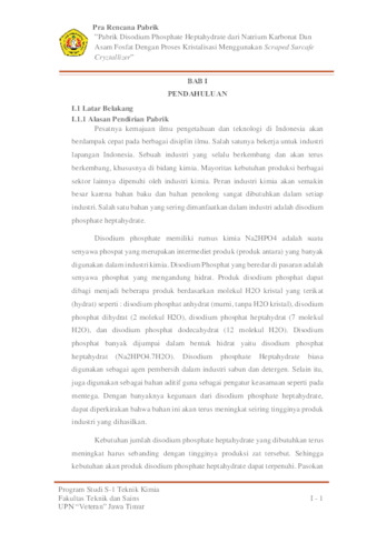 Nuha, Farhah Kamilatun (2024) Pra Rancangan Pabrik Disodium Phosphate Heptahydrate dengan Proses Kristalisasi Menggunakan Scraped Surface Crystallizer. Undergraduate thesis, UPN Veteran Jawa Timur.