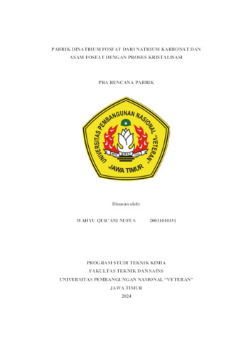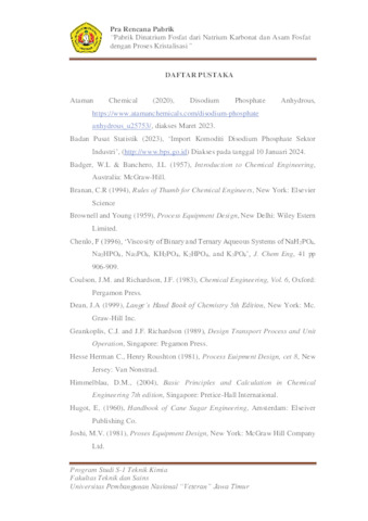 Nufus, Wahyu Qur'ani (2024) Pabrik Dinatrium Fosfat dari Natrium Karbonat dan Asam Fosfat dengan Proses Kristalisasi. Undergraduate thesis, UPN Veteran Jawa Timur.