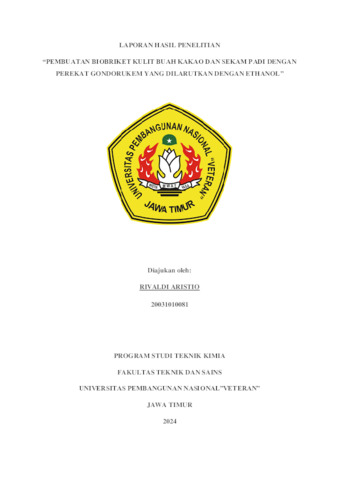 Aristio, Rivaldi (2024) PEMBUATAN BIOBRIKET KULIT BUAH KAKAO DAN SEKAM PADI DENGAN PEREKAT GONDORUKEM YANG DILARUTKAN DENGAN ETHANOL. Undergraduate thesis, UPN Veteran Jawa Timur.