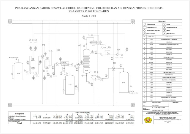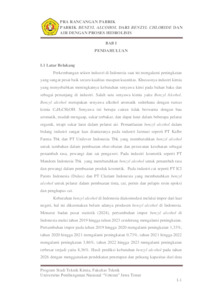 A Benzyl Alcohol plant with a capacity of 95,000 tons/year, using the hydrolysis process of Benzyl Chloride and water, will be established in the JIIPE Industrial Area, Gresik, at Jalan Raya Manyar KM 11 Manyarejo, Manyar Sido Rukun, Manyar District, Gresik Regency, East Java. This Benzyl Alcohol plant operates continuously for 24 hours a day with 330 working days and 160 employees. The plant uses Benzyl Chloride, sourced from Hebei Hongbang, Co. Ltd, China, and water from the Kalimireng River in Gresik as raw materials. The product is 99.91% pure benzyl alcohol. Benzyl alcohol can be utilized in various industries, including the pharmaceutical industry, such as PT Kalbe Farma Tbk and PT Unilever Indonesia Tbk, which require benzyl alcohol as an additive in the production of medicines and healthcare products for flavoring, fragrance, and as a preservative. In the cosmetics industry, companies like PT Mandom Indonesia Tbk use benzyl alcohol for flavoring and fragrance in cosmetic products. In the paint industry, companies like PT ICI Paints Indonesia (Dulux) and PT Clariant Indonesia use benzyl alcohol as a solvent in the production of ink, paint, varnish, epoxy resin coatings, and paint removers.