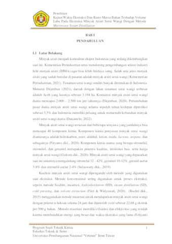 Putra, Sandy Buana (2024) KAJIAN WAKTU EKSTRAKSI DAN RASIO MASSA BAHAN TERHADAP VOLUME LABU PADA EKSTRAKSI MINYAK ATSIRI SERAI WANGI DENGAN METODE MICROWAVE STEAM DISTILLATION. Undergraduate thesis, UPN "VETERAN" JAWA TIMUR.