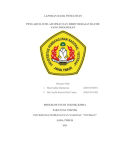 Cahyo, Mei Syella Kurnia Putri (2023) Pengaruh Jumlah Spray dan Debit Terhadap Derajat Baume Yang Dihasilkan. Undergraduate thesis, UNIVERSITAS PEMBANGUNAN NASIONAL "VETERAN" JAWA TIMUR.