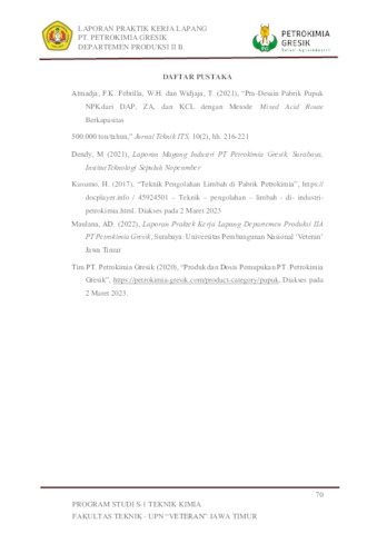 Zhafarina, Safira Cecilia (2024) Analisis Neraca Massa dan Panas Unit ZK dengan Kapasitas 10.000 Ton/Tahun di PT Petrokimia Gresik. Project Report (Praktek Kerja Lapang dan Magang). Repository UPN Veteran Jatim. (Unpublished)