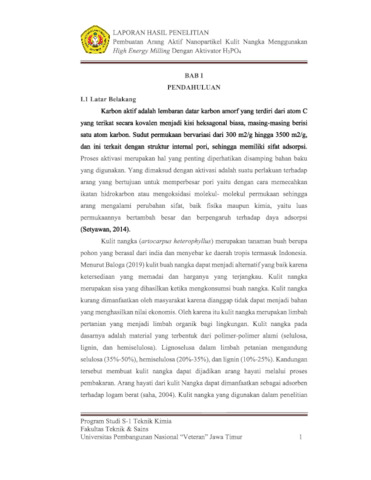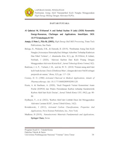 Al Ghifary, Muhammad Faris (2024) PEMBUATAN ARANG AKTIF NANOPARTIKEL KULIT NANGKA MENGGUNAKAN HIGH ENERGY MILLING DENGAN AKTIVATOR H3PO4. Undergraduate thesis, UPN Veteran Jawa Timur.