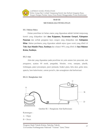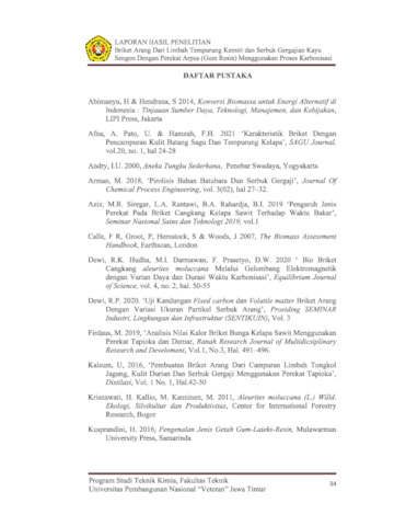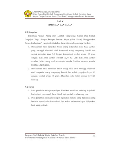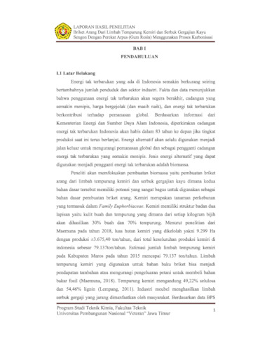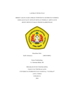 Abimanyu, Raffi (2024) Briket Arang dari Limbah Tempurung Kemiri dan Serbuk Gergajian Kayu Sengon Dengan Perekat Arpus (Gum Resin) Menggunakan Proses Karbonisasi. Undergraduate thesis, UPN Veteran Jawa Timur.