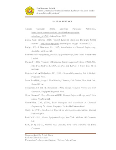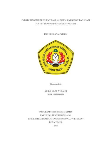 Nuraini, Adila Silmi (2024) Pra Rencana Pabrik Dinatrium Fosfat dari Natrium Karbonat dan Asam Fosfat dengan Proses Kristalisasi. Undergraduate thesis, UPN Veteran Jawa Timur.